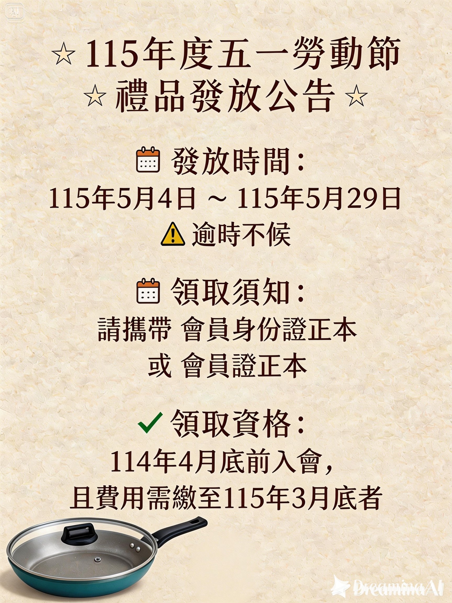自115年5月4日起開始發放,領取期限至115年5月29日止(逾時不候)